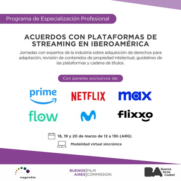 Es tal la presencia del estado porteño en las políticas audiovisuales, que recientemente, en asociación con las principales plataformas de streaming, lanzó una convocatoria gratuita para desarrollar un programa dirigido a profesionales de las industrias audiovisual, editorial y musical de toda Iberoamérica y tiene como objetivo capacitar a ejecutivos de dichos sectores para perfeccionar su desempeño en las negociaciones con las plataformas de streaming.
